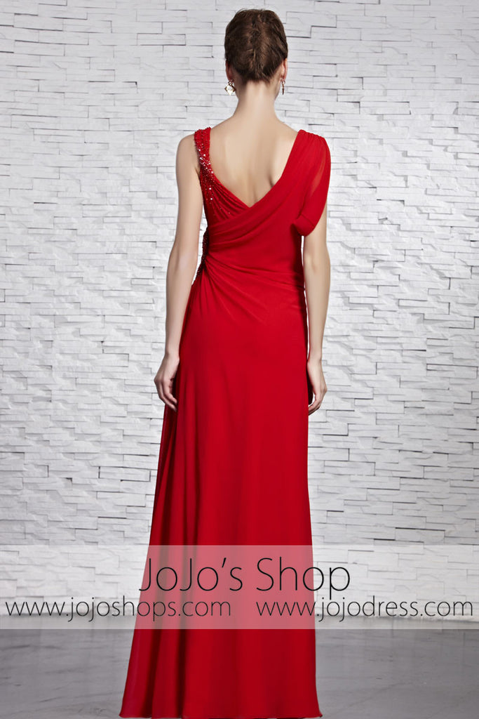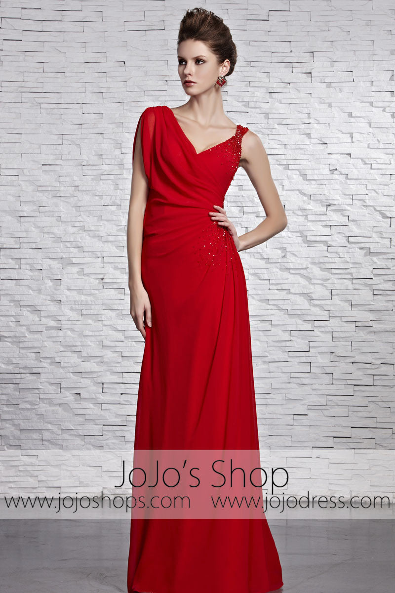 Red Grecian V Neck Low Back Formal Prom Pageant Dress CX881519