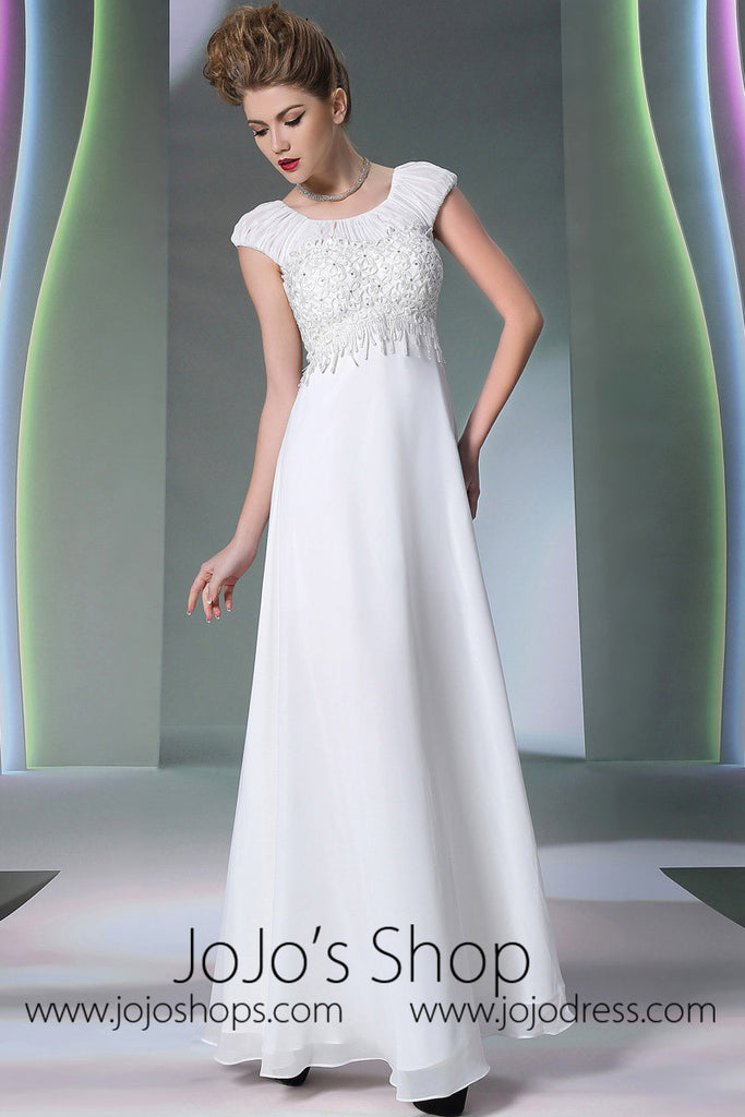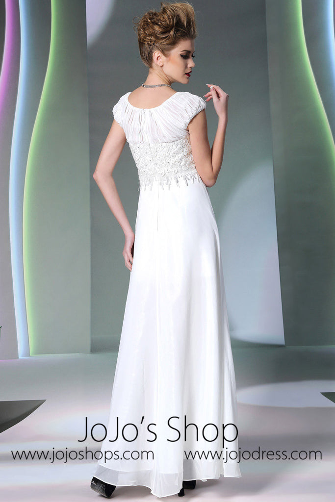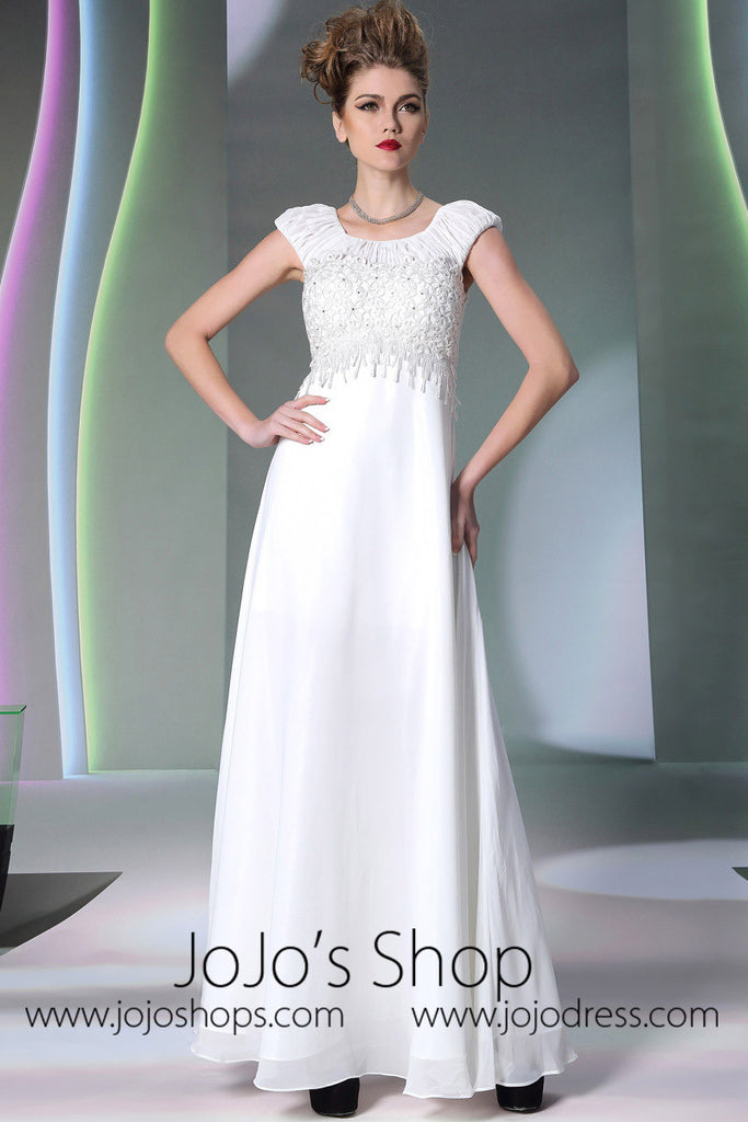 Modest Ivory Cap Sleeves Formal Prom Evening Dress DQ830952