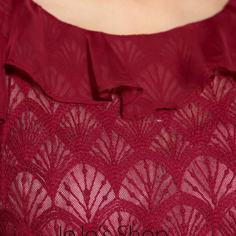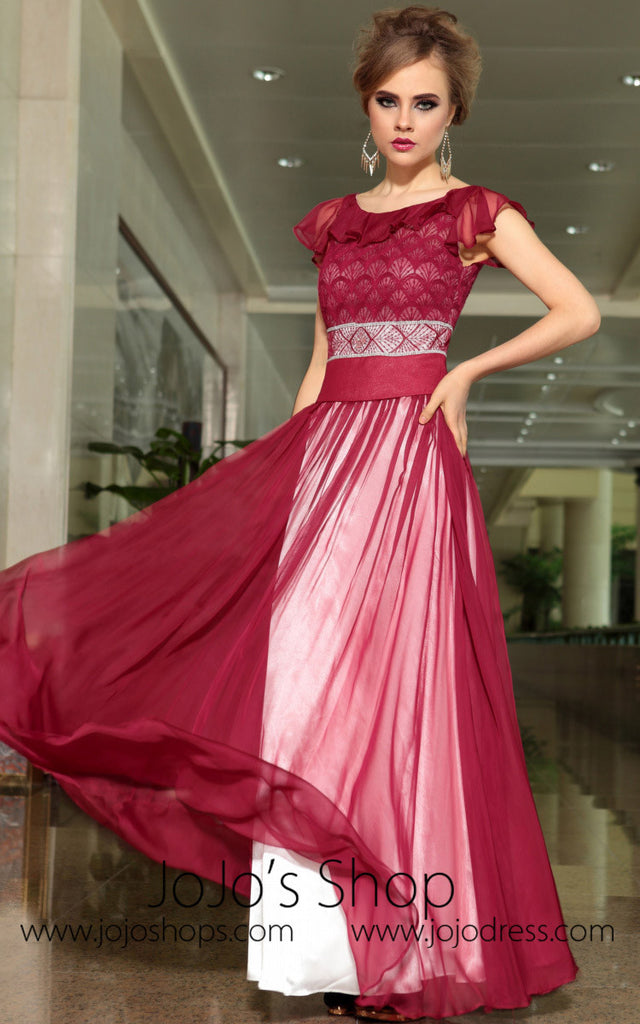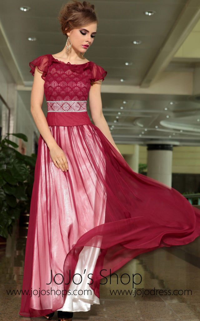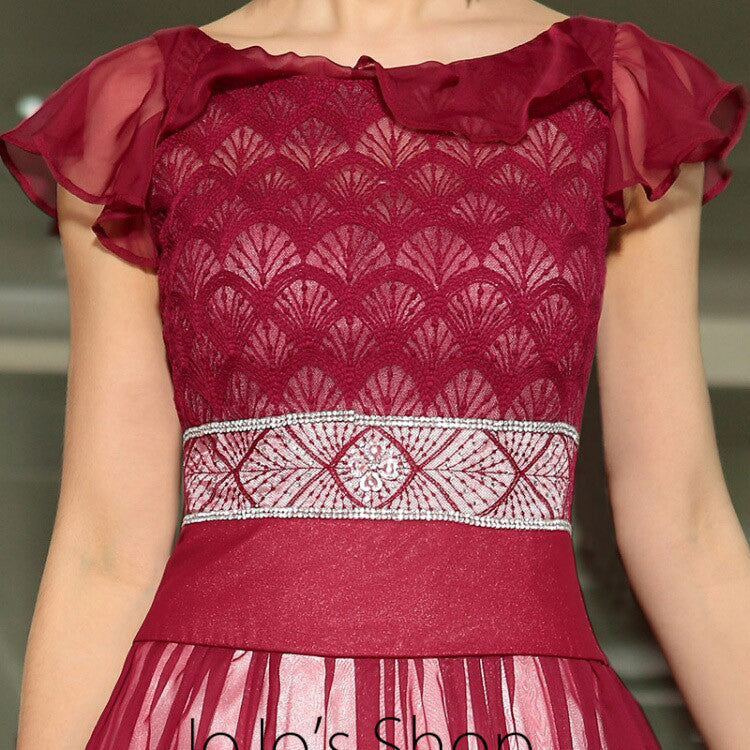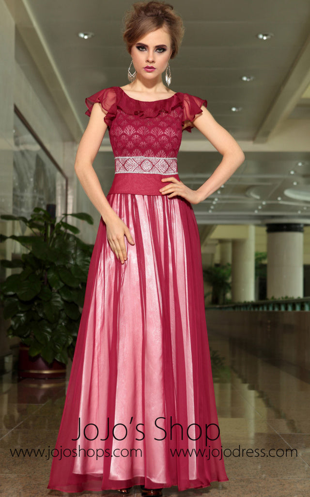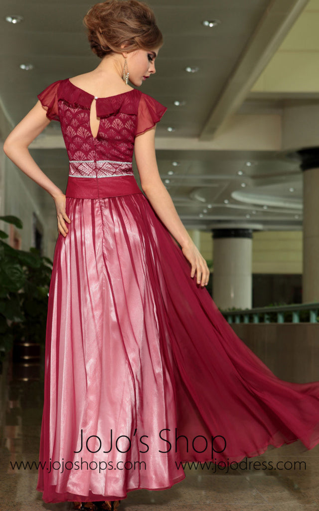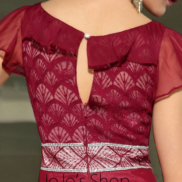 Modest Red Jewel Neck Short Sleeves Formal Prom Evening Cocktail Dress DQ830887