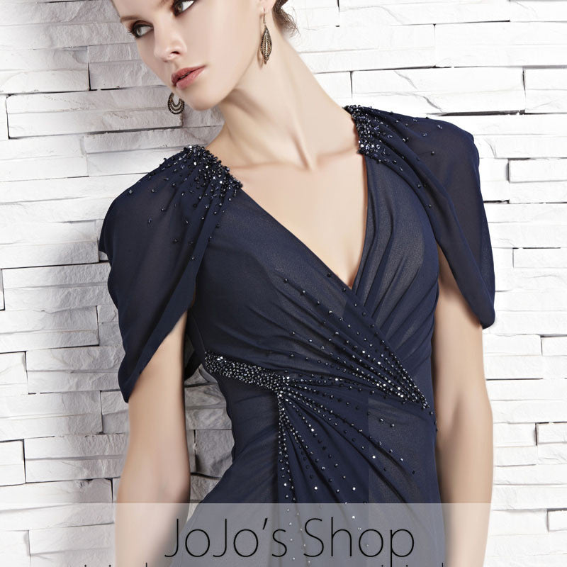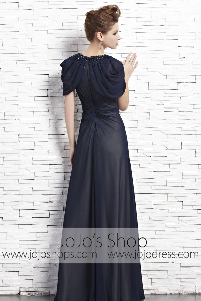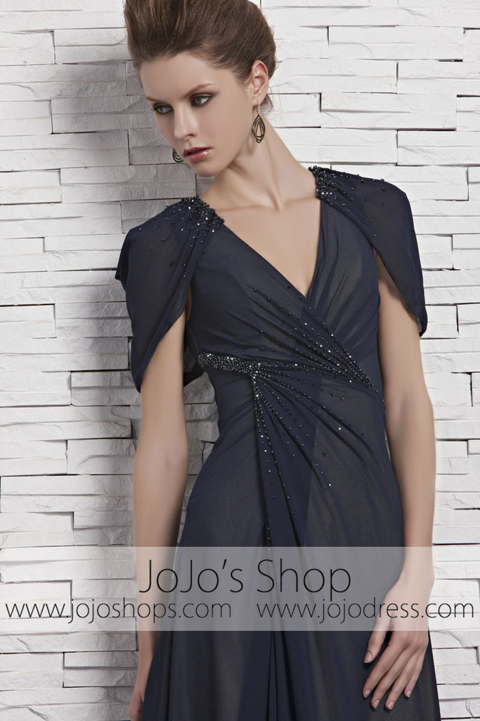 Home > Products > Navy Blue Short Sleeves Chiffon V Neck Evening Formal Dress CX881533