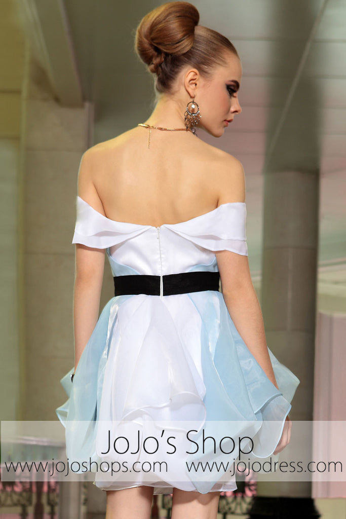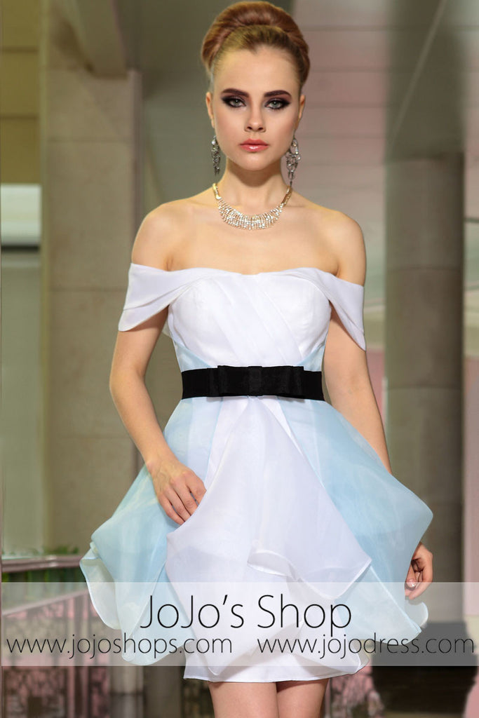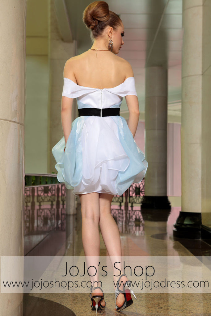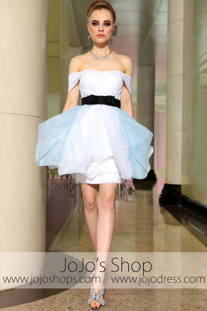 Off Shoulder White Blue Bridesmaid Cocktail Evening Formal Dress DQ86056