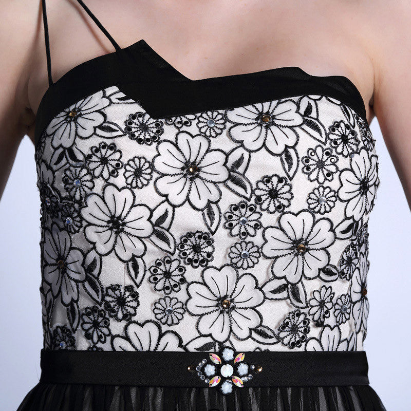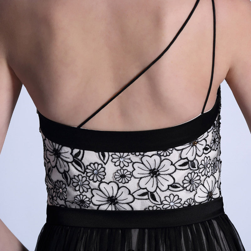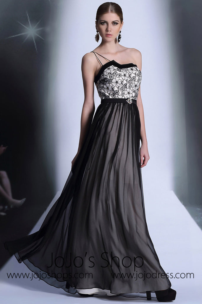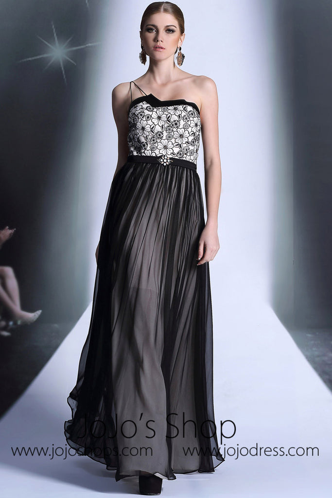 One Shoulder Black Lace Formal Prom Dress DQ830939
