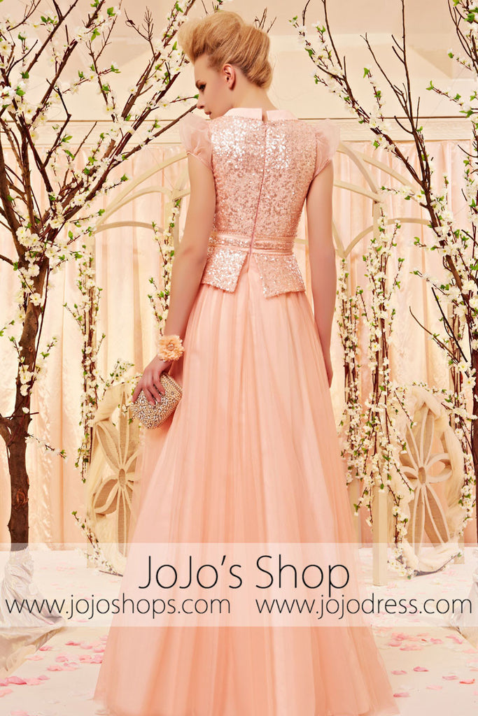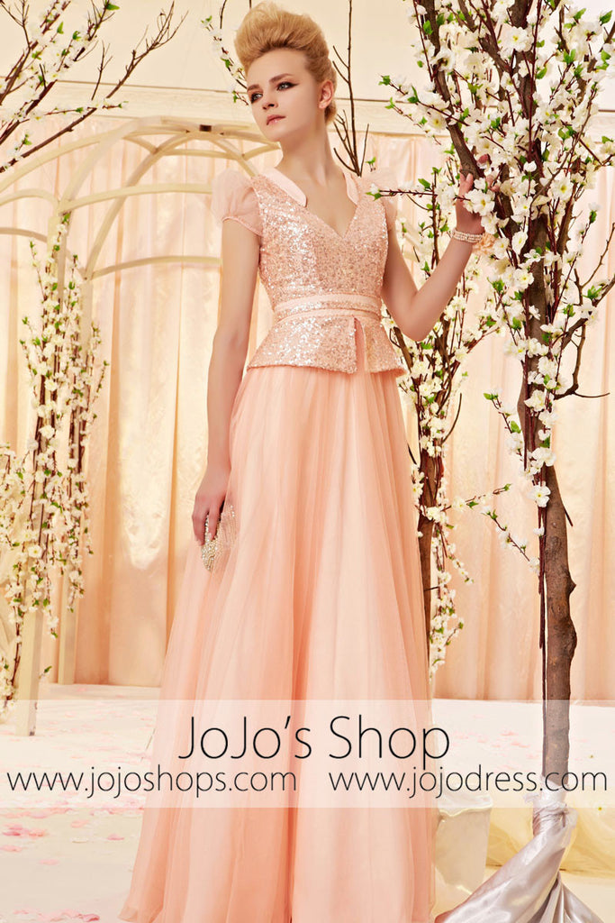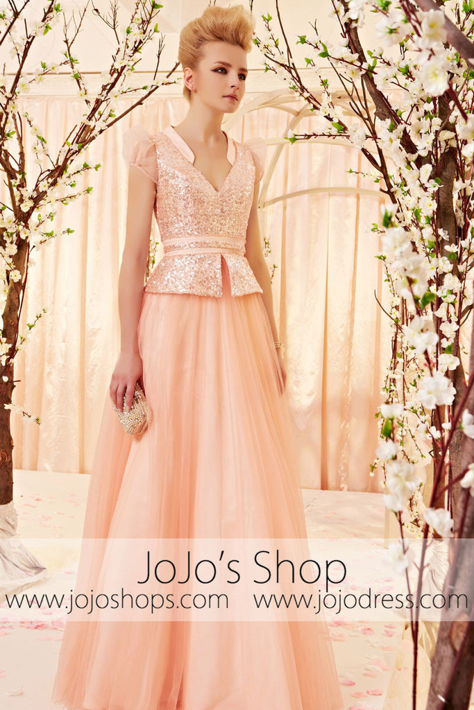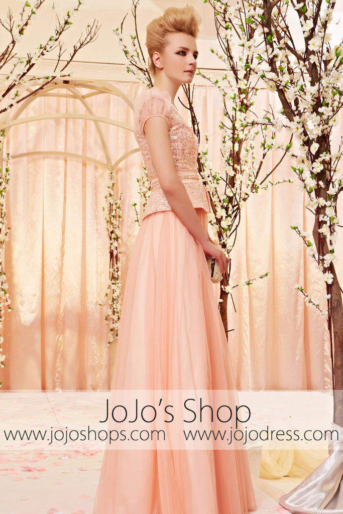 Princess Peach Pink Puff Sleeves Organze Tulle Evening Dress CX830393
