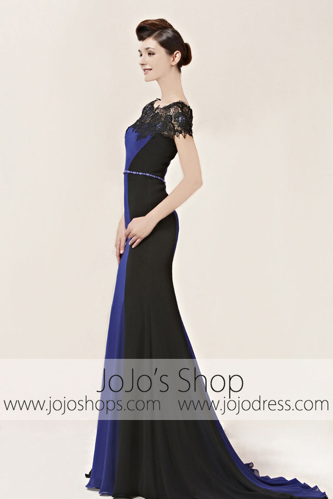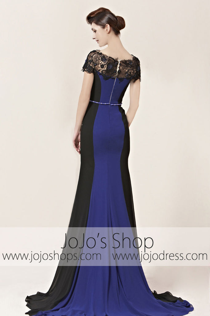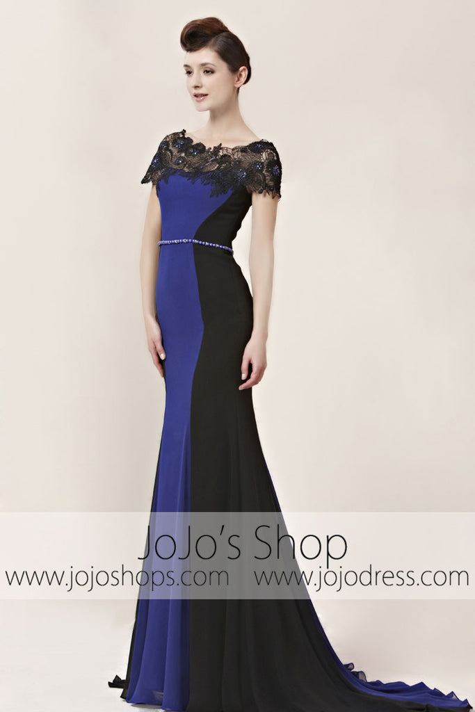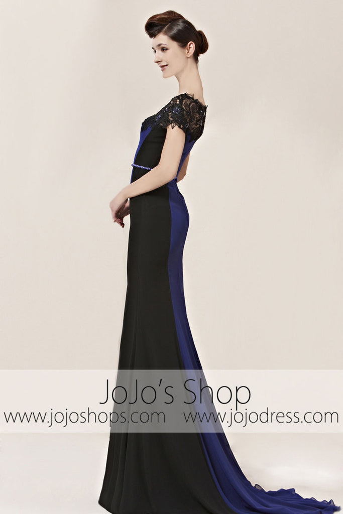 Purple Modest Lace Sleek Black Tie Formal Evening Cocktail Dress CX830016