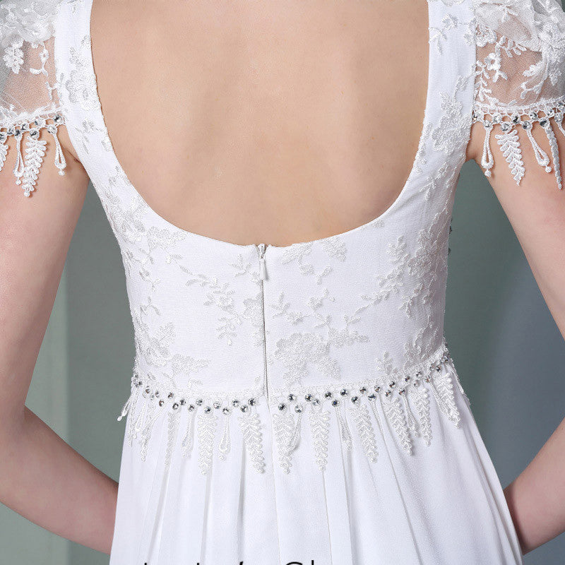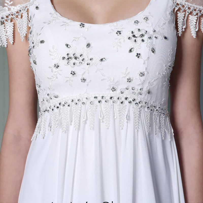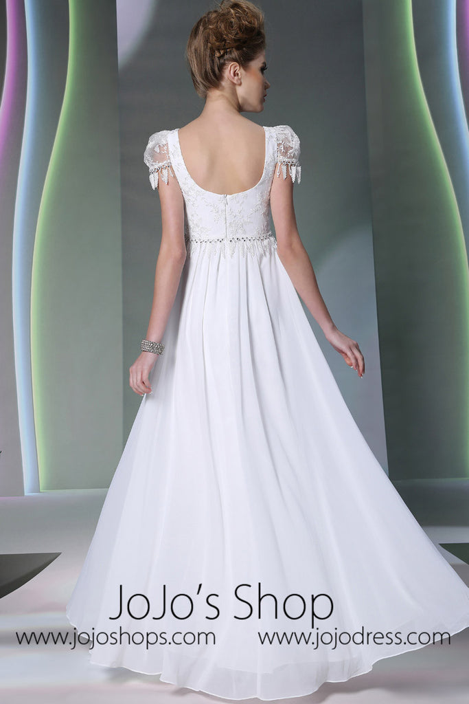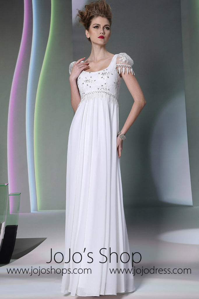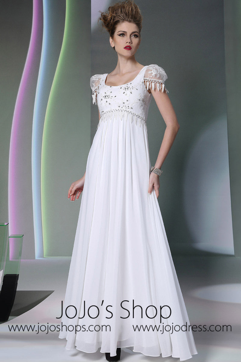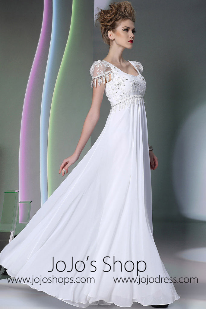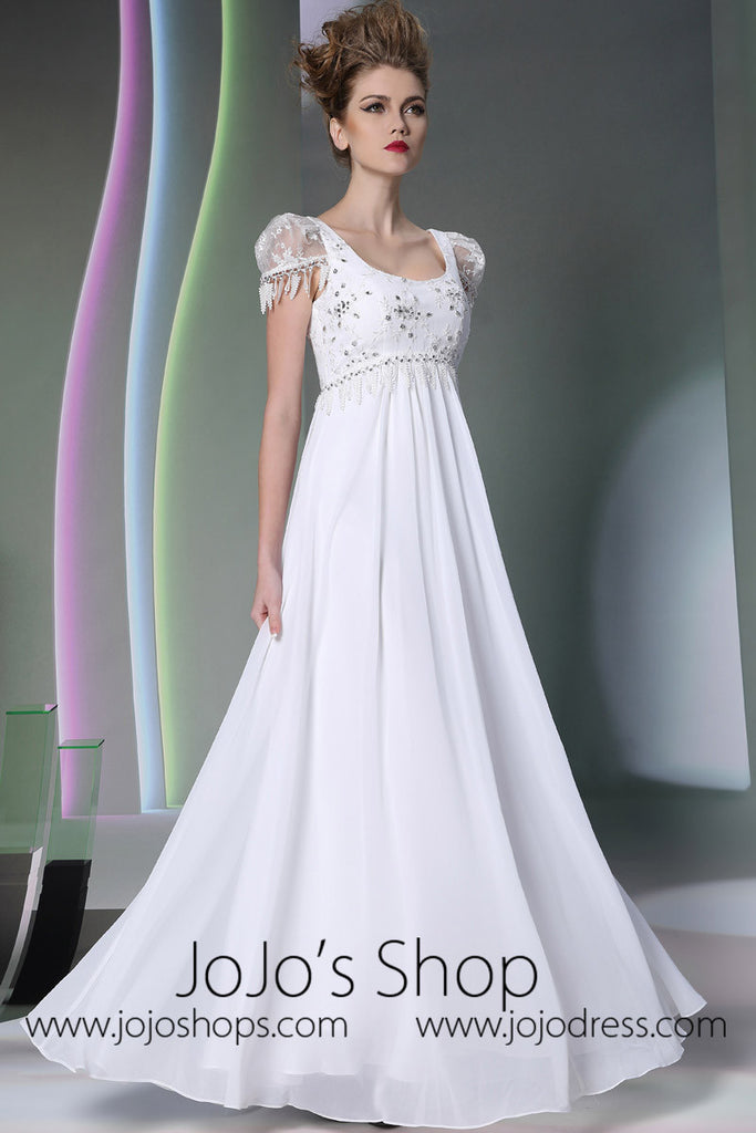 Regency White Cap Sleeves Formal Prom Dress DQ830951