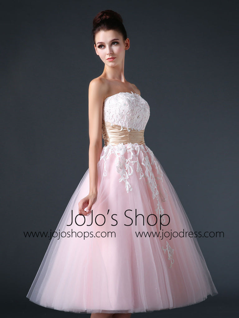 Retro 50s Strapless Pink Tea Length Prom Dress Evening Dress | CS3006