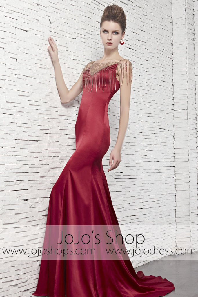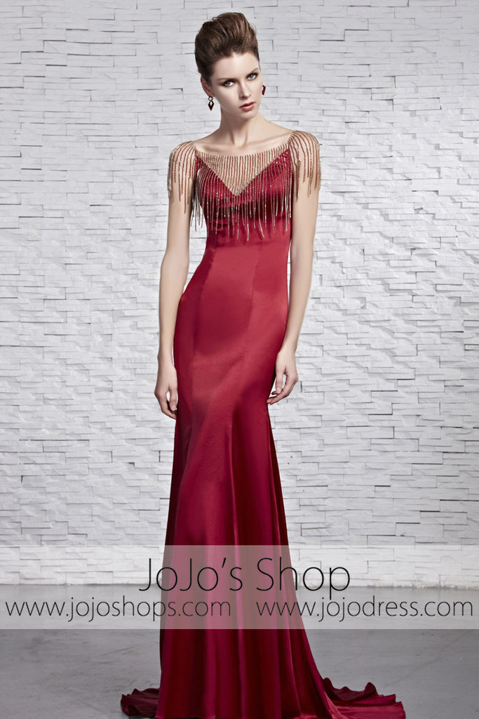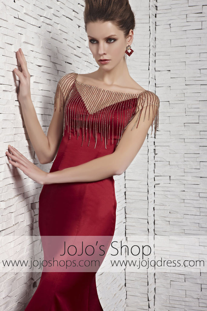 Retro Hollywood Scarlet Red Sleek Evening Formal Dress CX881652