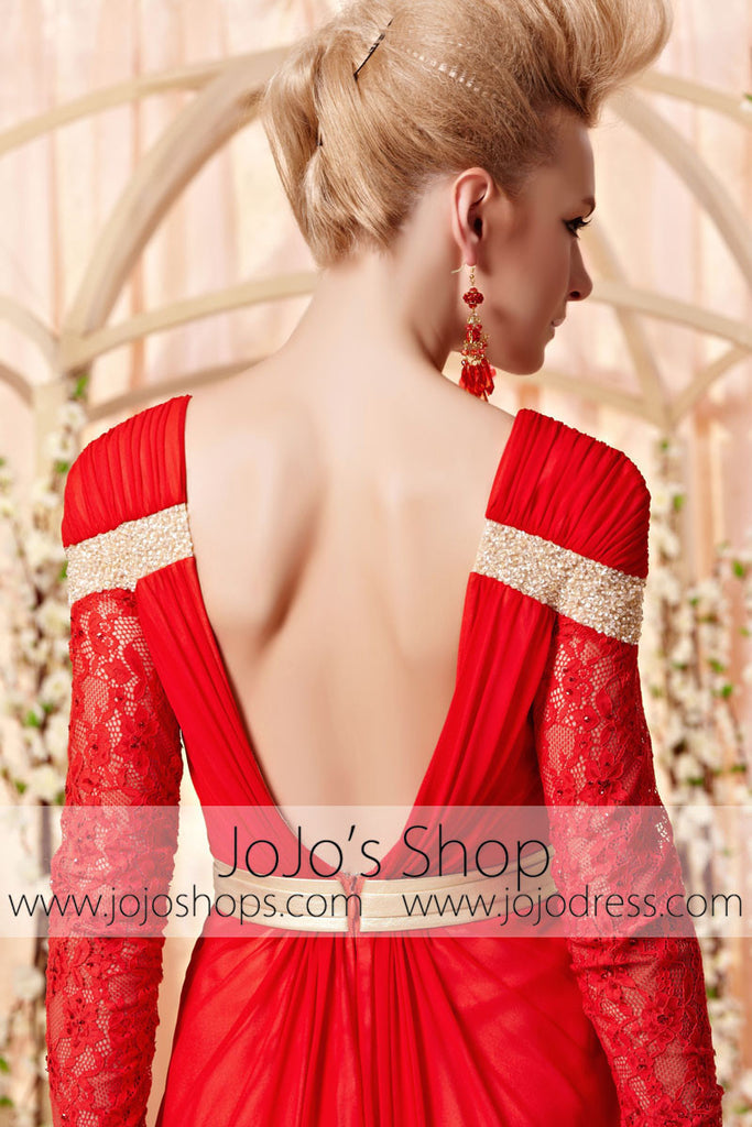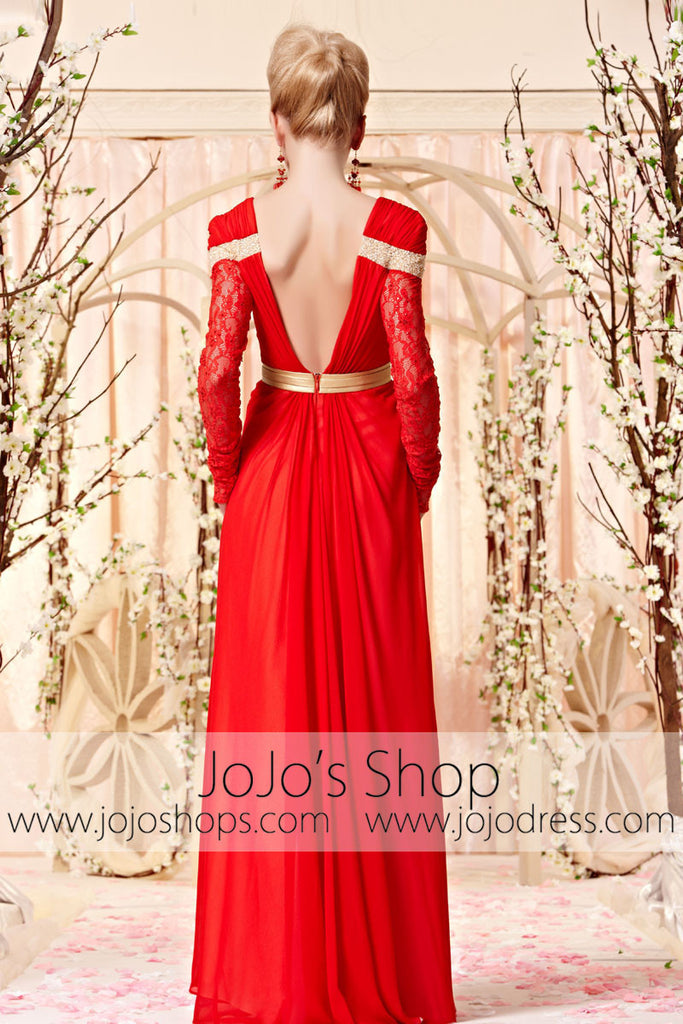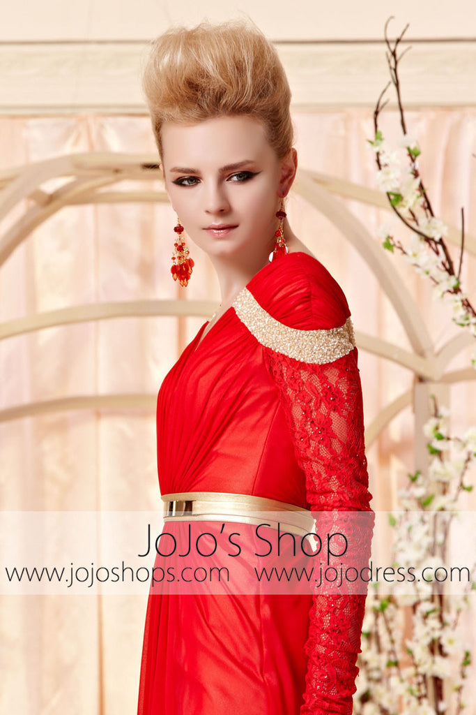 Retro Long Sleeves Red and Gold Evening Dress