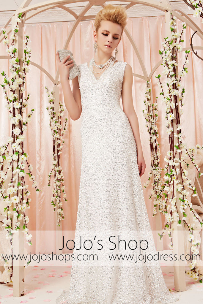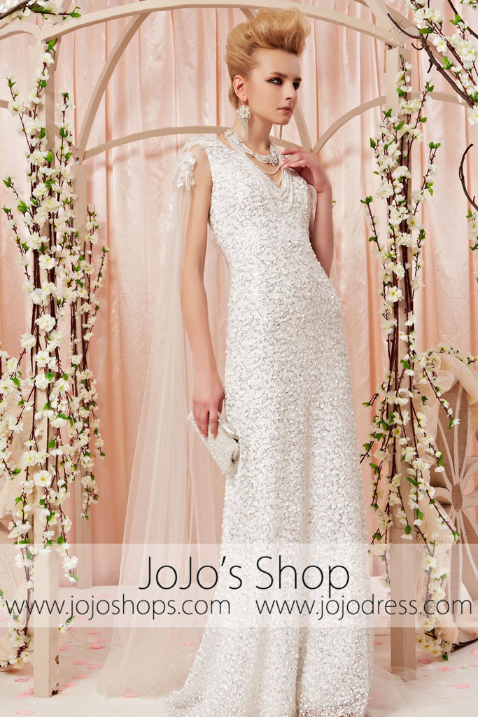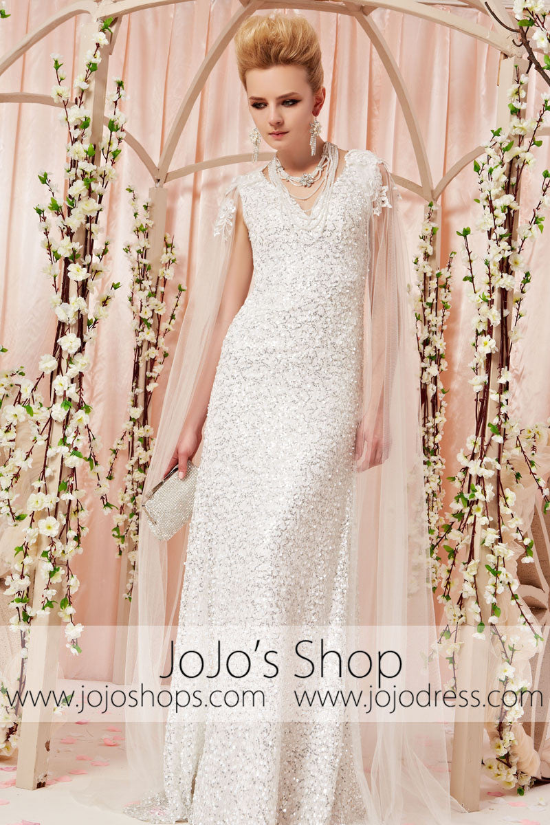 Silver White Sparkly Lace 2 Piece Black Tie Evening Dress CX830399