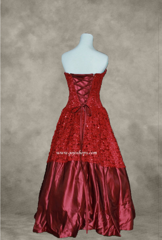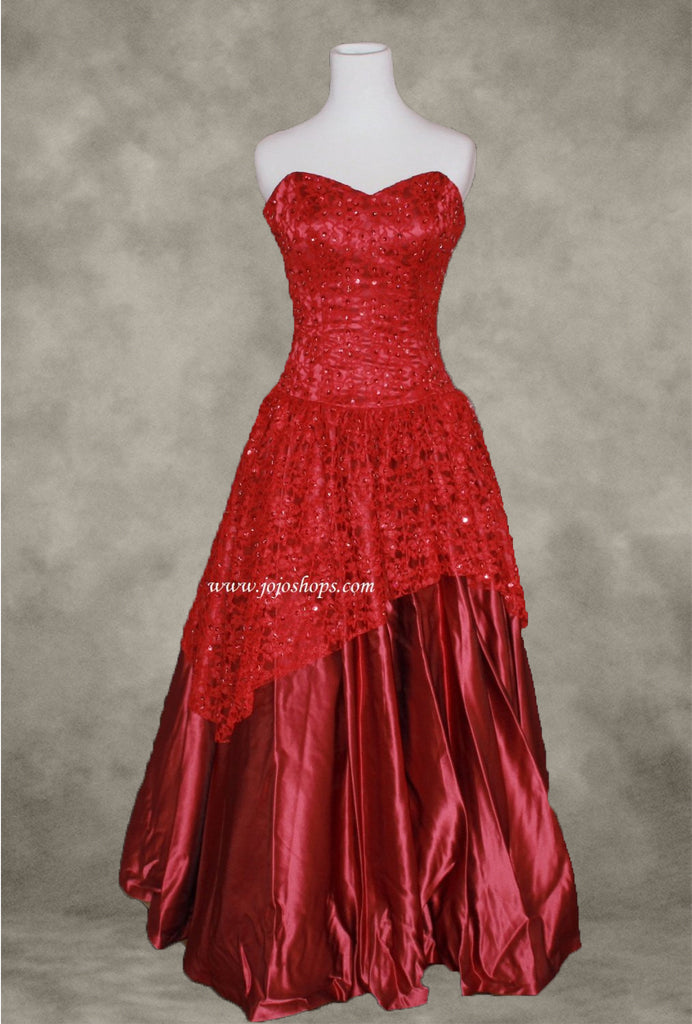 Strapless Red Lace Ball Gown Formal Prom Dress Size 2
