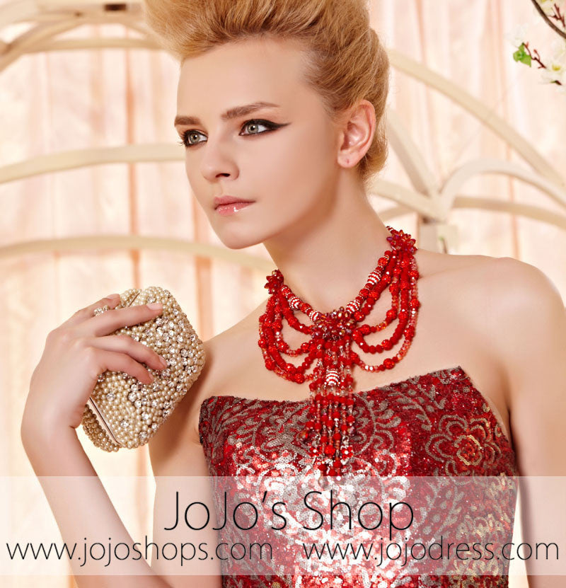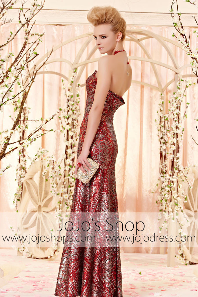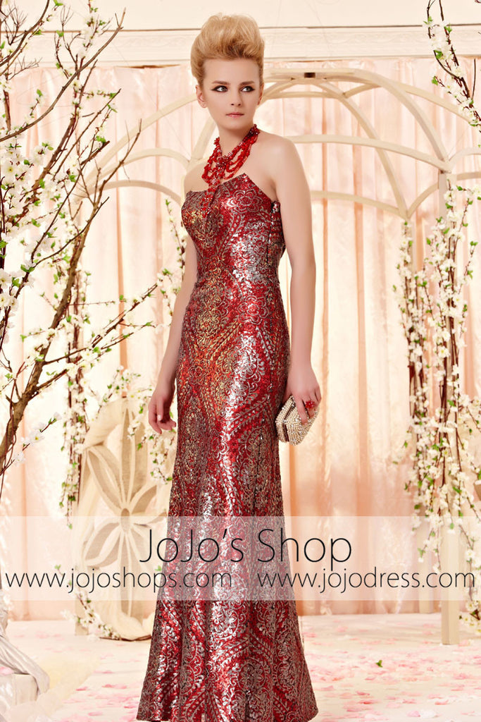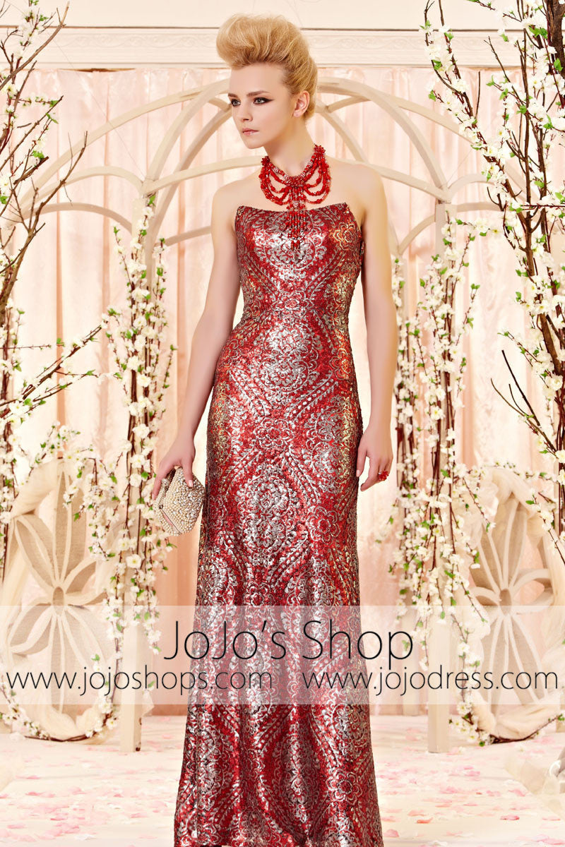 Stunning Red and Silver Sequins Vintage Pattern Strapless Evening Dress CX830303