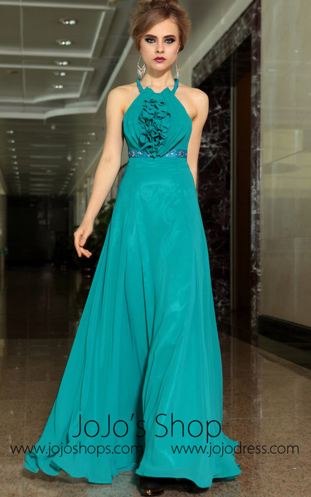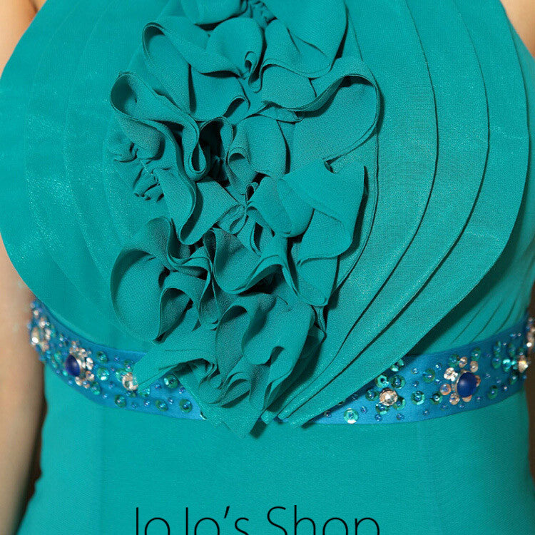 Teal Green Cross Back Ruffle Formalprom Evening Cocktail Dress DQ830908
