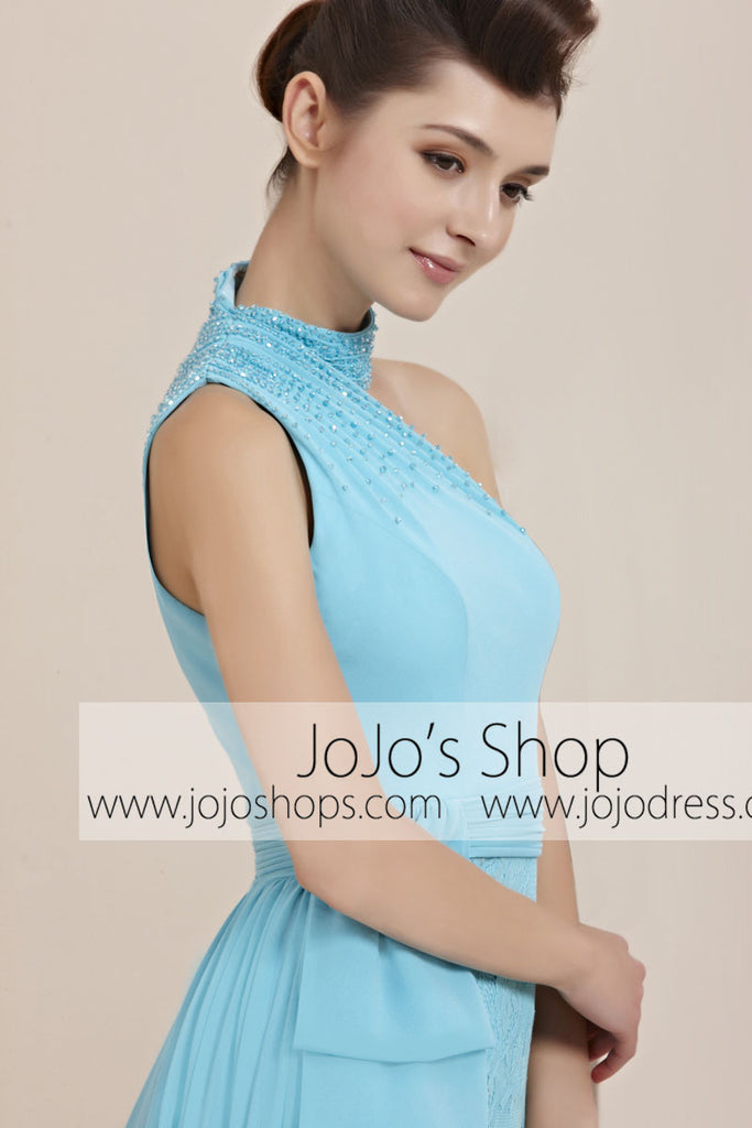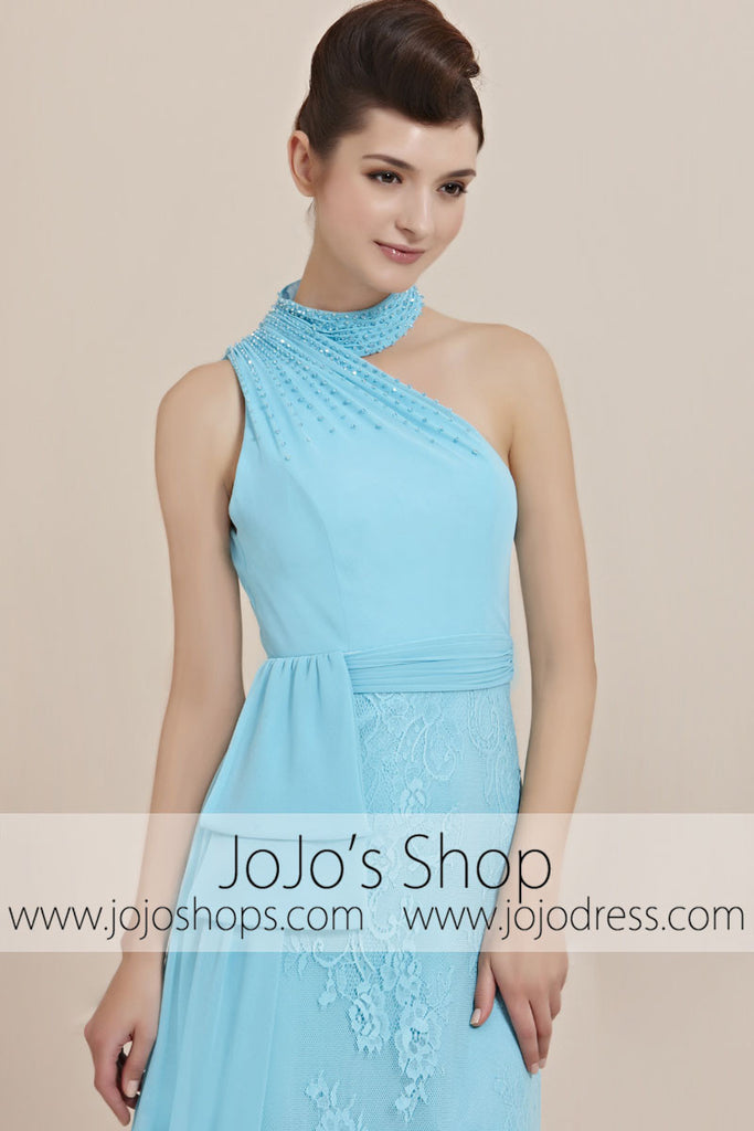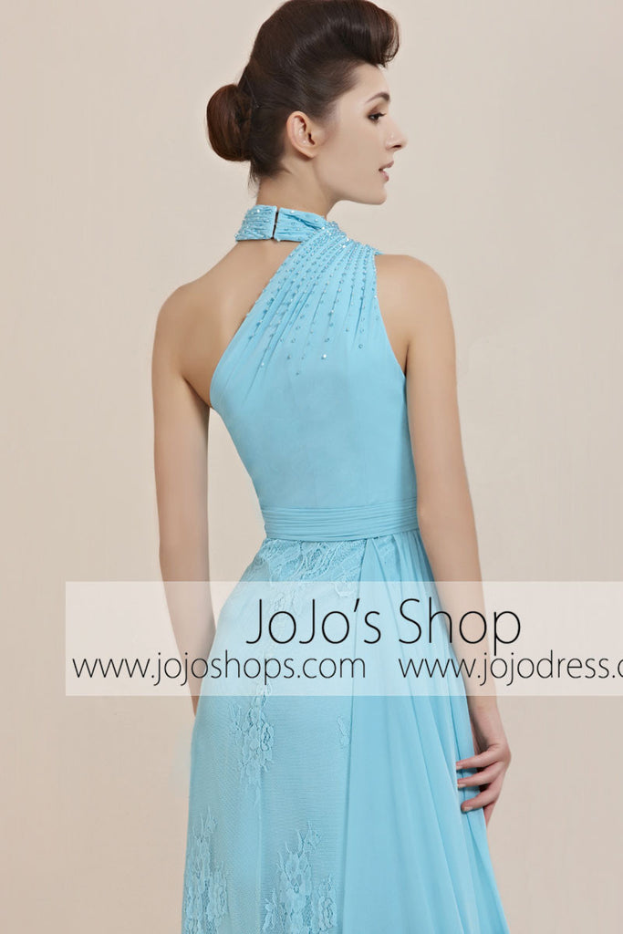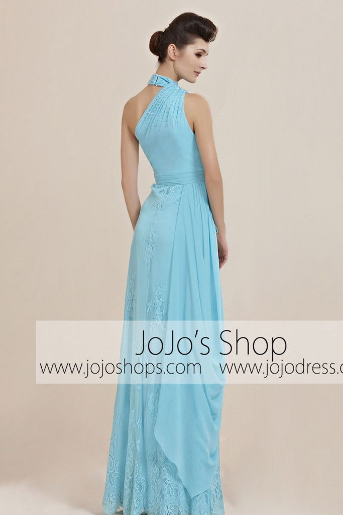 Turquiose Blue Halter Floor Length Prom Evening Cocktail Dress CX830081
