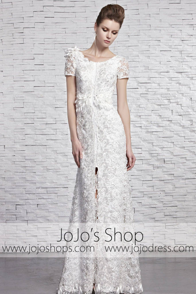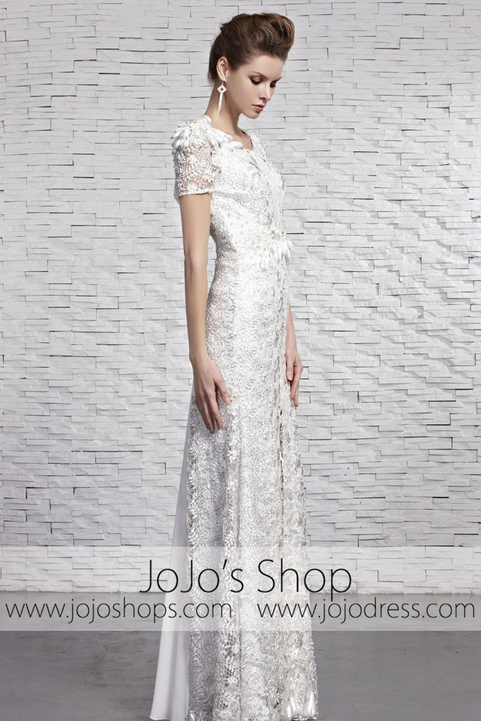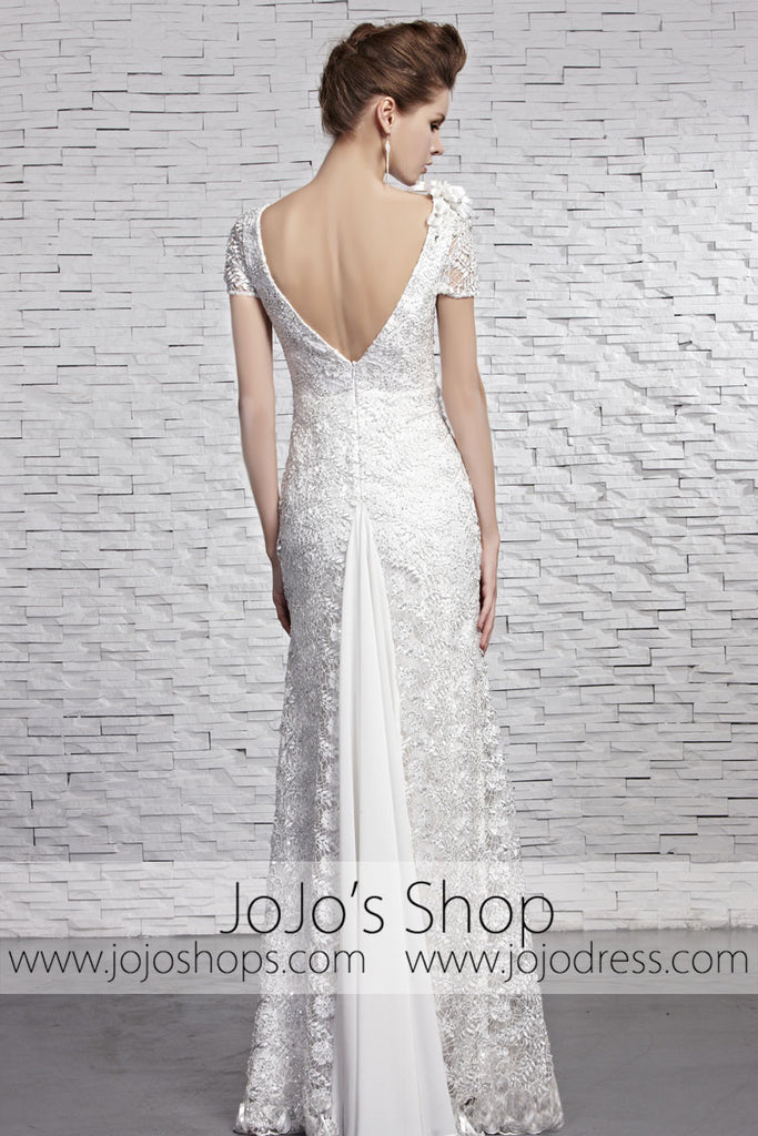 White Low Back Lace Reception Prom Evening Formal Dress CX881593